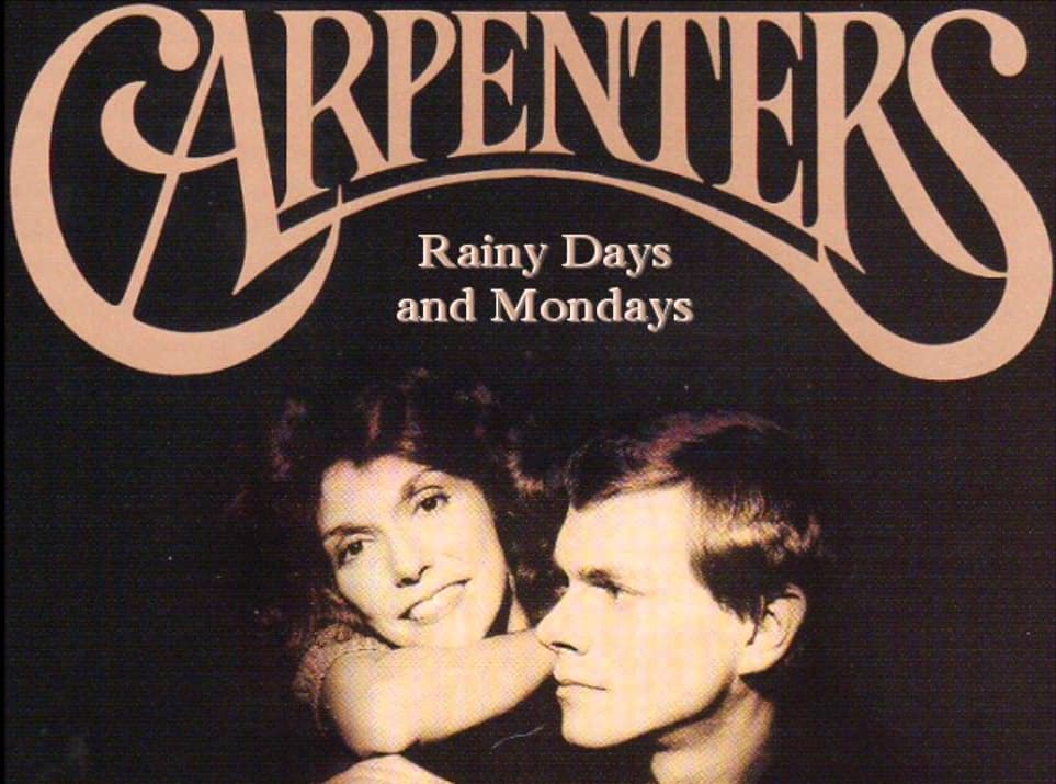 Rainy Days and Mondays is a song by the Carpenters from their self-titled third album, with instrumental backing by the Wrecking Crew. It was written by Paul Williams (lyrics) and Roger Nichols (music), who had previously written “We’ve Only Just Begun,” another hit for the duo.