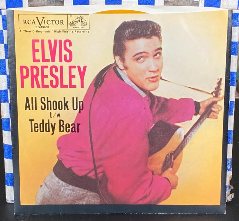 According to Jorgensen, one distinctive sound on Elvis’ “All Shook Up” recording that was overdubbed was the beat created by Elvis slapping on the back of a guitar. It enhanced, Jorgensen noted, the “combination of laid-back feeling and driving beat that made Blackwell’s songs unique. It was as perfect a pop record as its predecessor.”