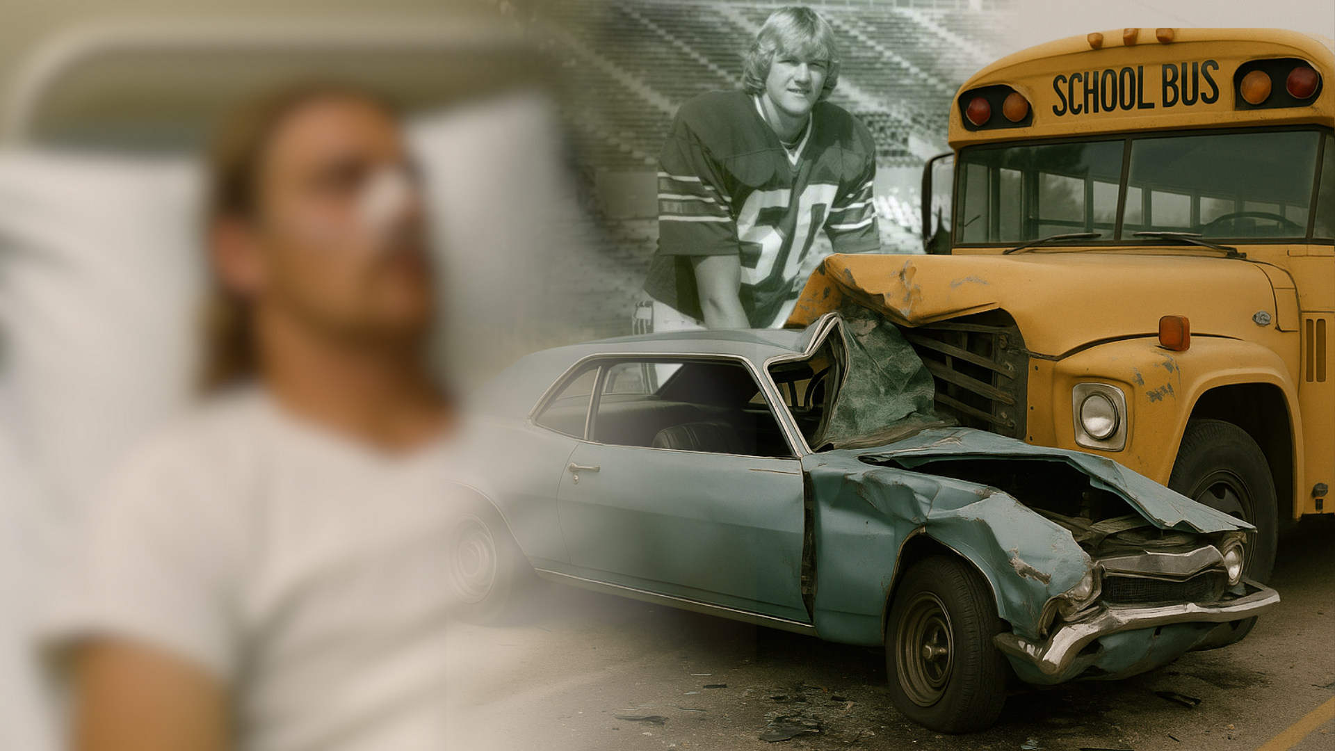 In 1972, 17-year-old Trace was a promising high school football player in Sarepta, Louisiana. One evening, while driving, his car collided head-on with a school bus. The impact was catastrophic. His car was nearly demolished, and Trace was critically injured.