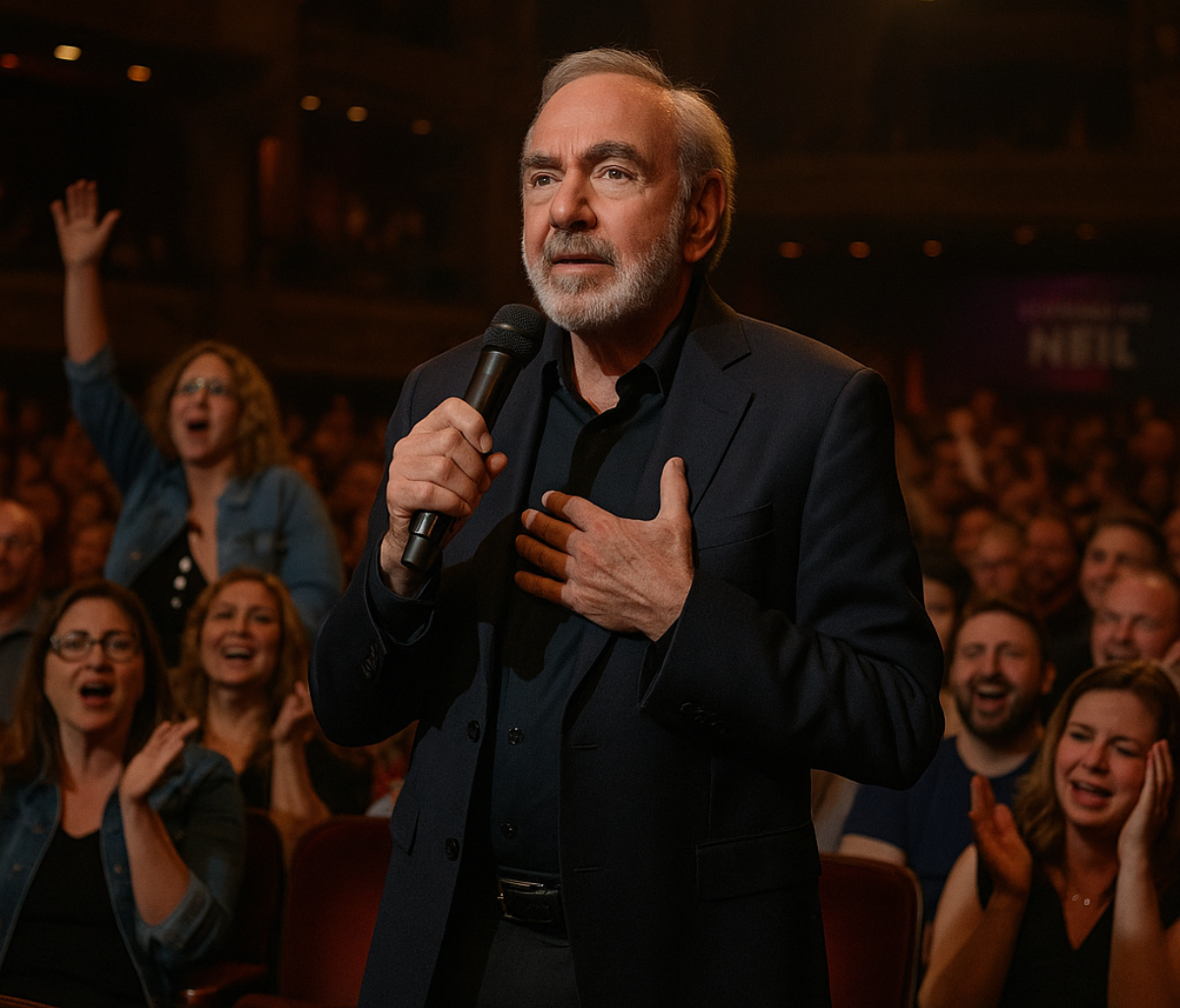 On the warm Saturday evening of July 12, 2025, something magical happened at the historic Hollywood Pantages Theatre in Los Angeles. The theatre was packed with fans expecting a typical tribute performance honoring Neil Diamond’s legendary career. What they didn’t expect was Neil Diamond himself — now 84 years old — to quietly stand up from his seat in the audience and begin to sing the opening lines of “Sweet Caroline.”
